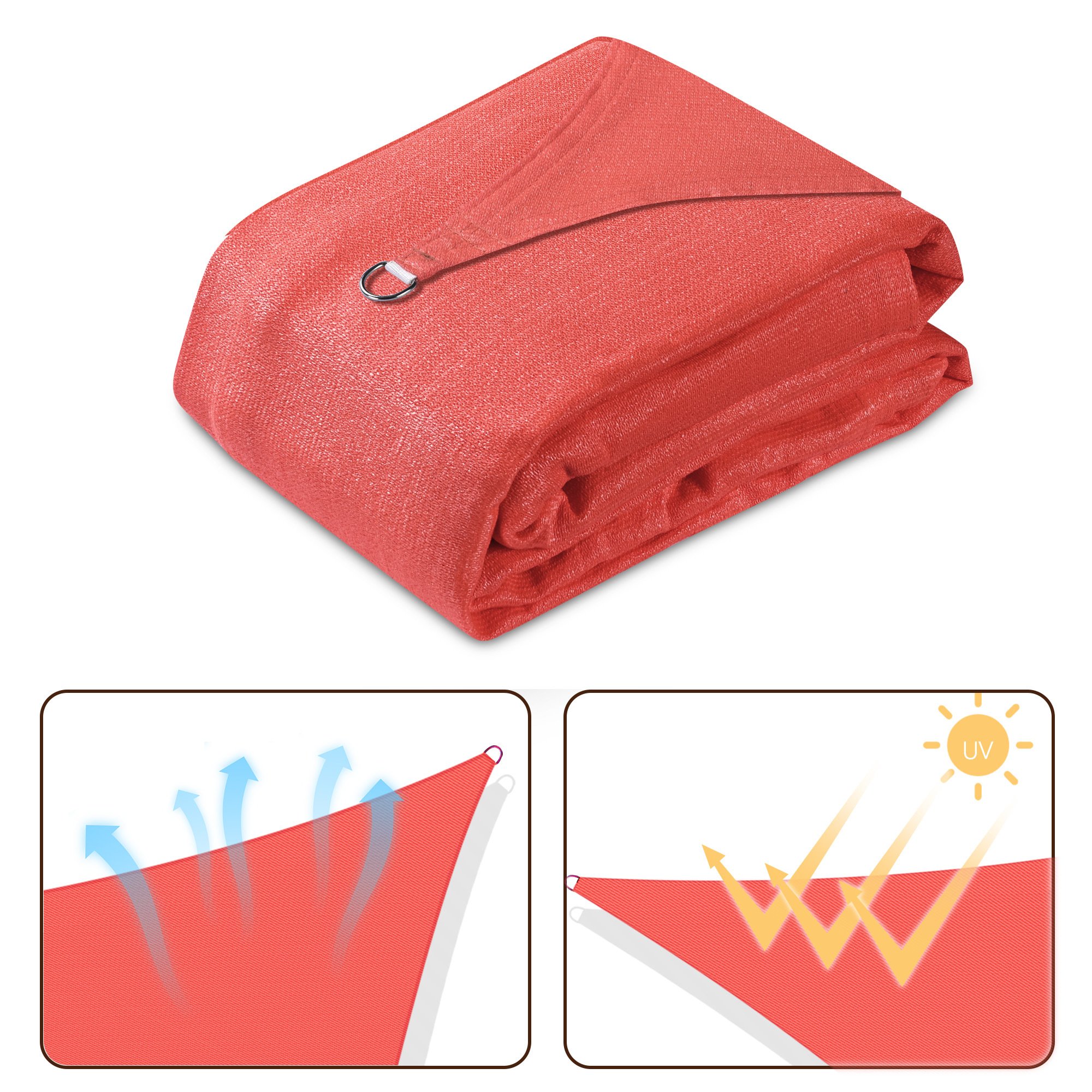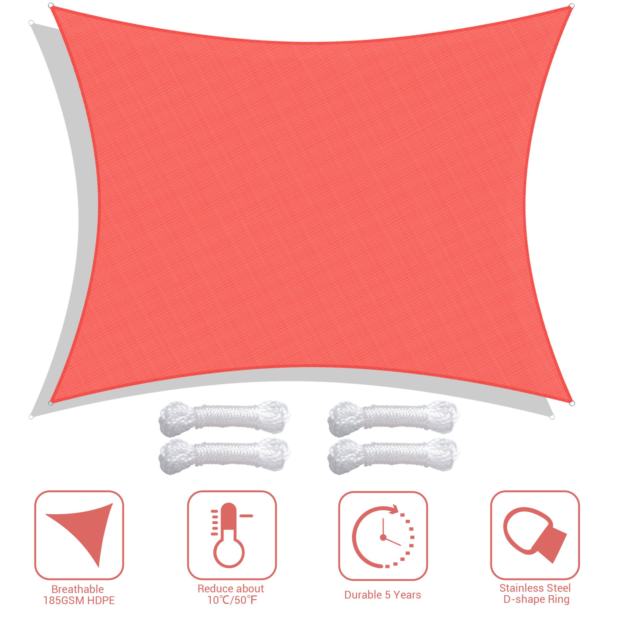 - HDPE Reduces Heat Transfer - Made of 100% brand new 185GSM HDPE material to efficiently reduce the temperature under sail about 50°F (10°C); excellent breathability to allow breeze to pass through; offers a cool and airy shelter on hot days