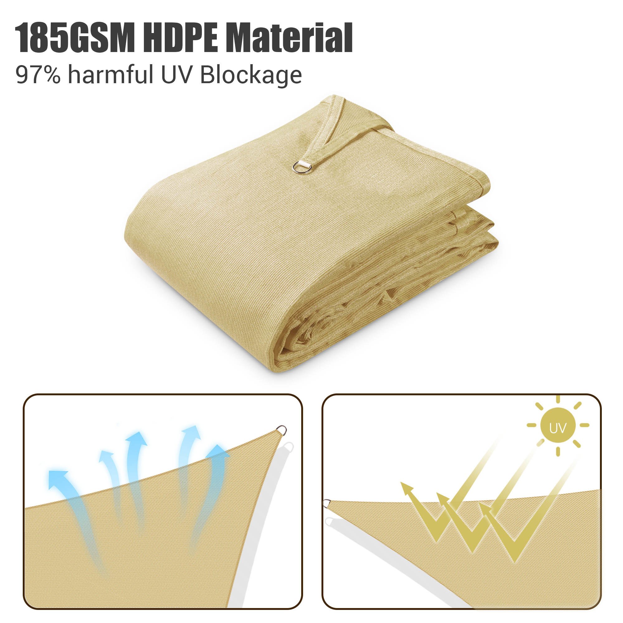 HDPE Reduces Heat Transfer - Made of 100% brand new 185GSM HDPE material to efficiently reduce the temperature under sail about 50°F (10°C); excellent breathability to allow breeze to pass through; offers a cool and airy shelter on hot days
