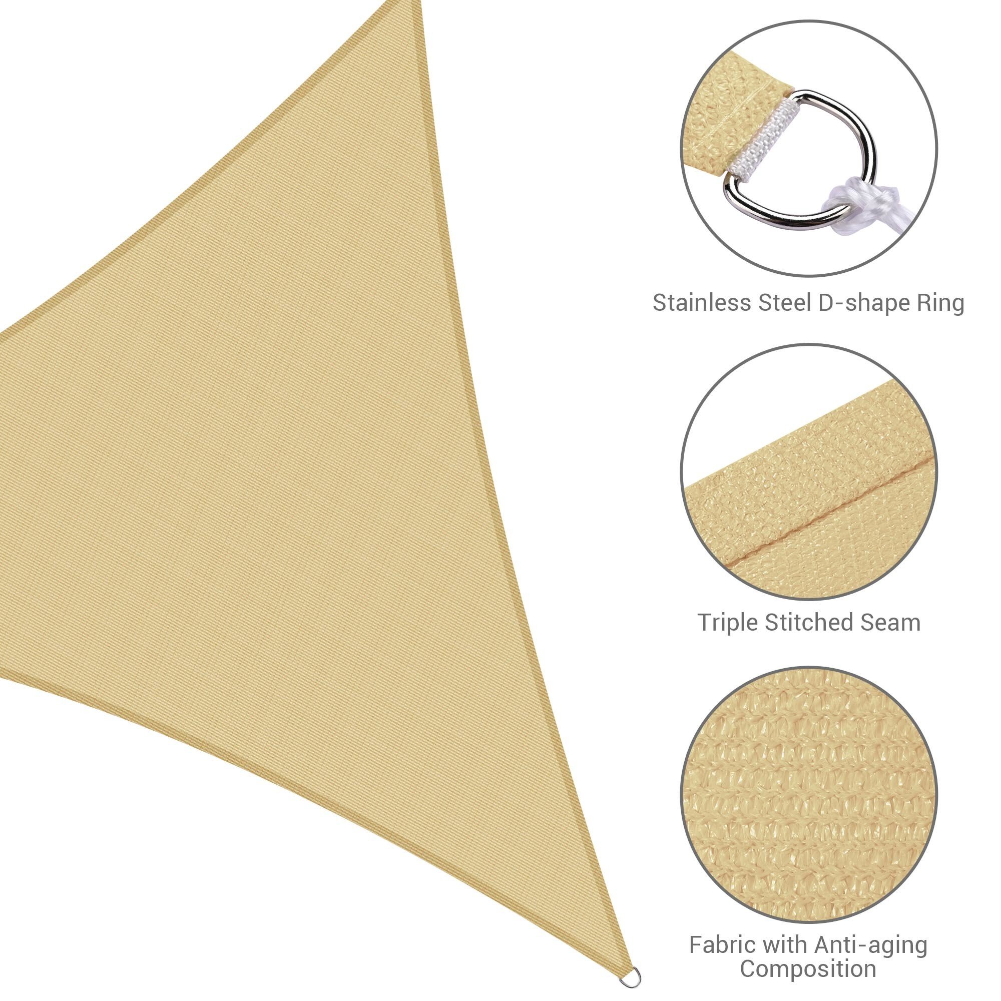 Durable in Use - Triple stitched seam reinforces the edge to prevent fraying and ripping; Curved triangle shape helps the sail to keep tight; Heavy-duty nylon ropes included; Anti-ager composition added for long time service